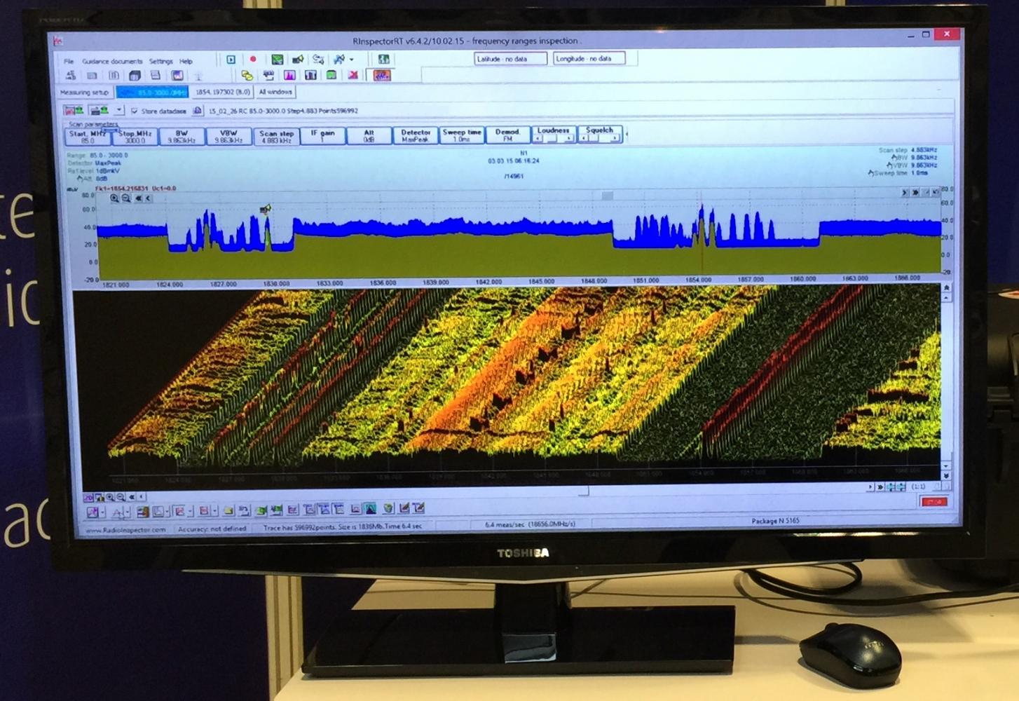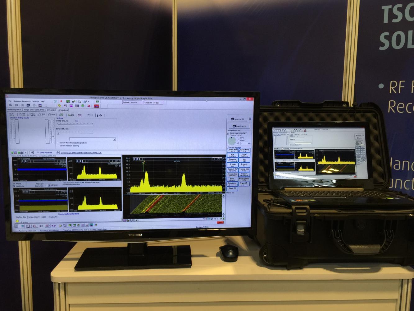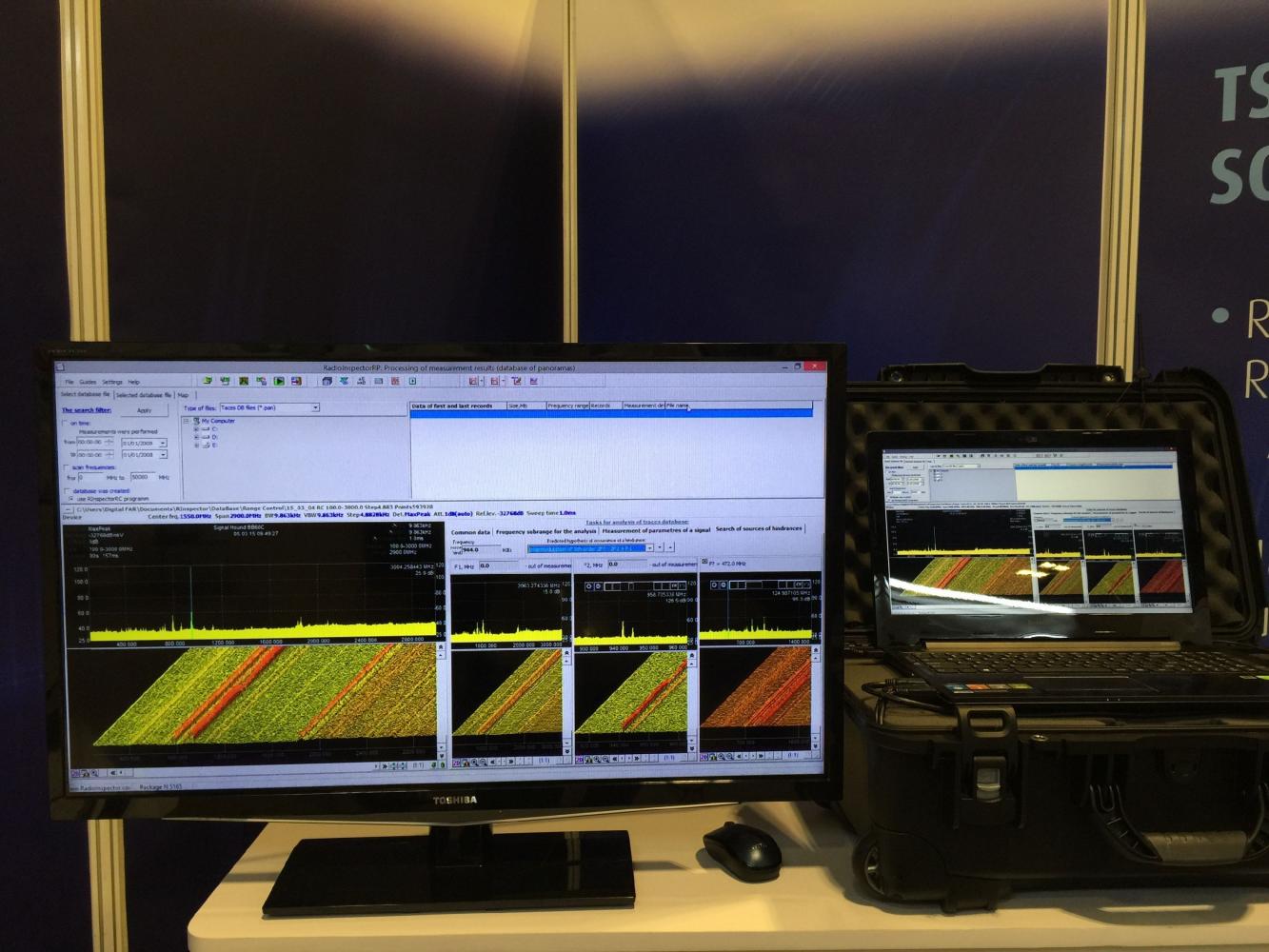 The sophisticated RF spectrum monitoring and analysis software application, RadioInspector, was on display with all of the latest advanced features with