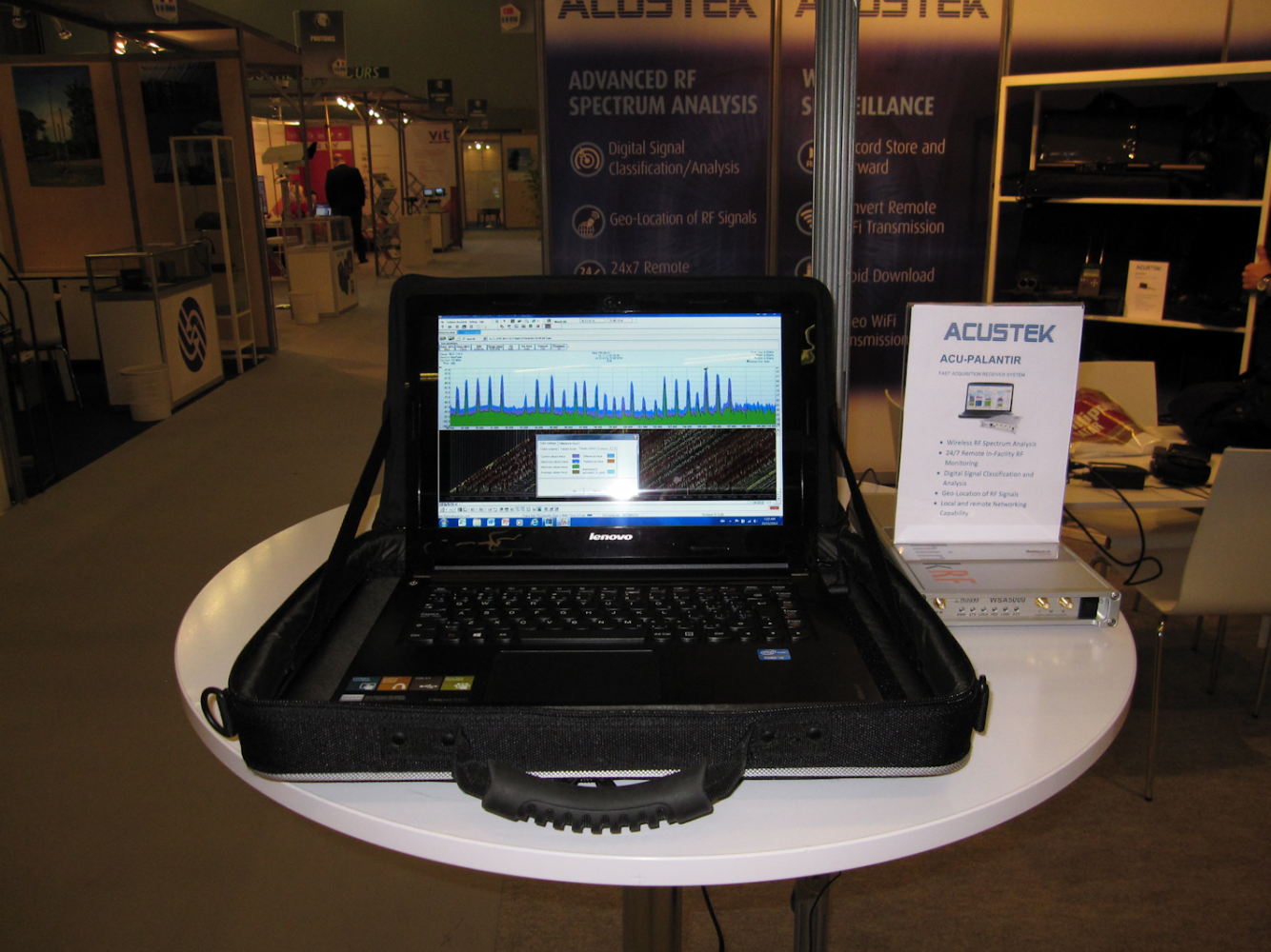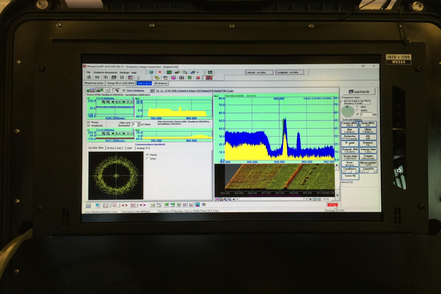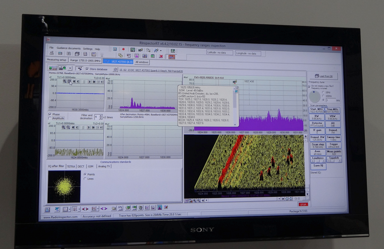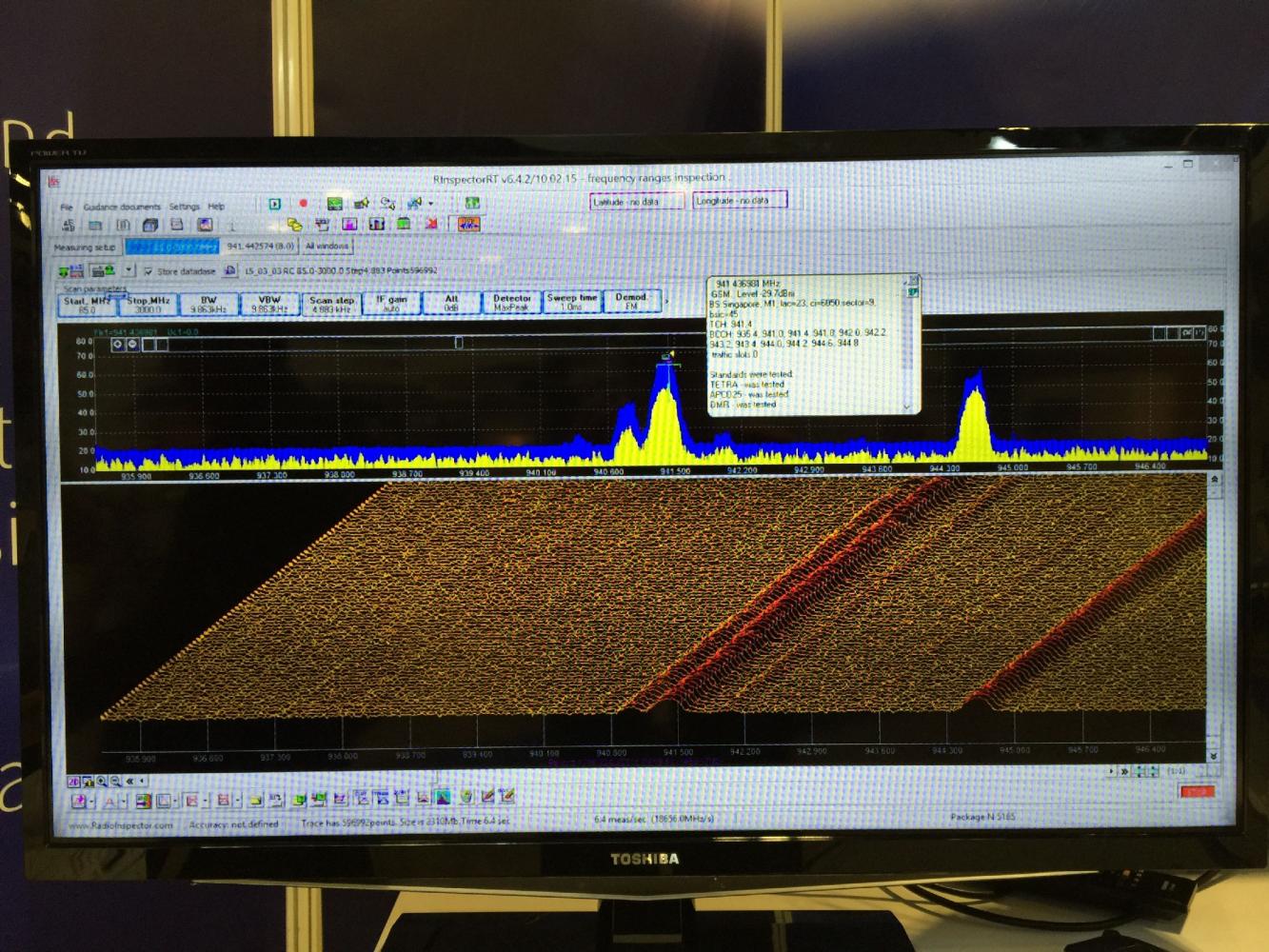 The sophisticated RF spectrum monitoring and analysis software application, RadioInspector, was on display with all of the latest advanced features with