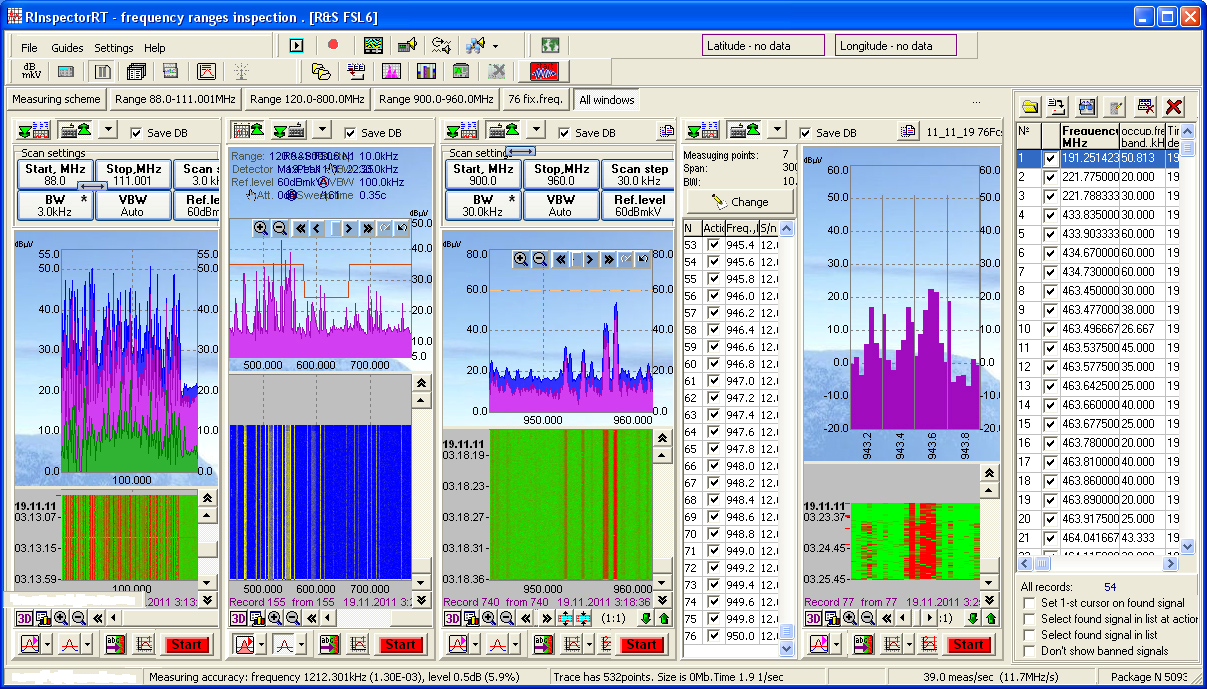 RF spectrum monitoring, complete spectrum data recording, signal